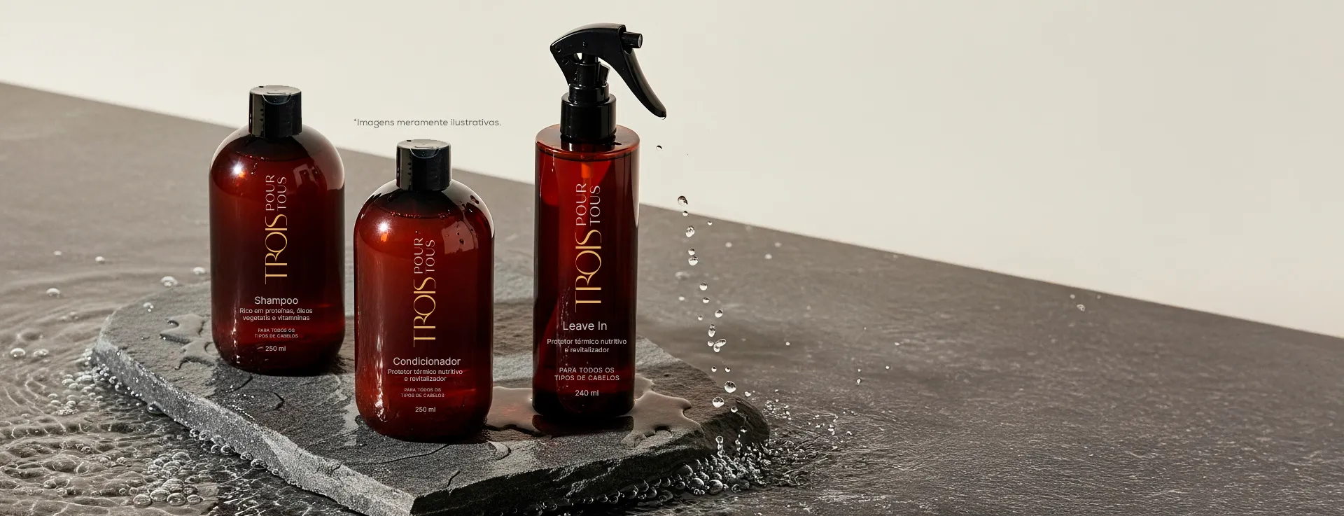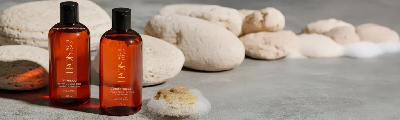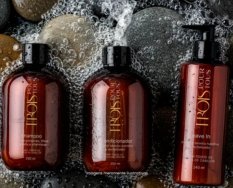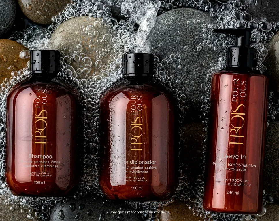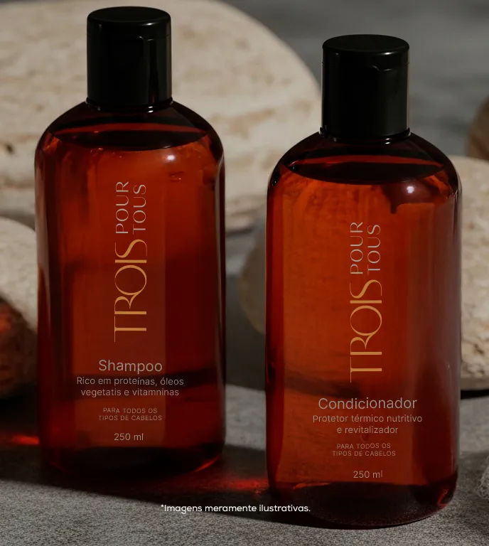 Durante o mês de lançamento, ao comprar uma hidratação com Pour Tous na Trois por R$ 300, você leva pra casa um shampoo e condicionador da linha.